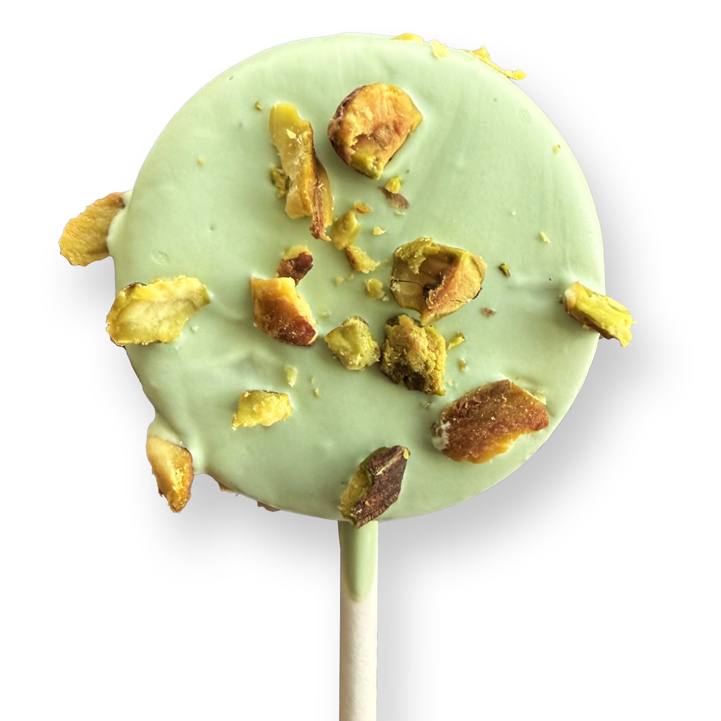 A nutty delight featuring pistachio-infused cake with a subtle roasted flavor, finished with a creamy shell. -